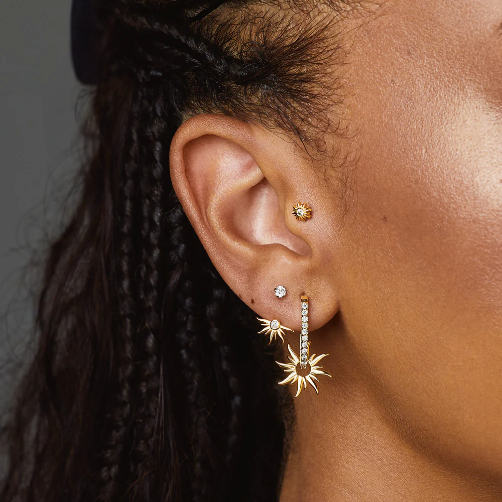 La boucle Glow en forme de soleil a été imaginée pour vous faire rayonner tout l’été. Elle s’associera parfaitement à la puce Sunset. 🌞